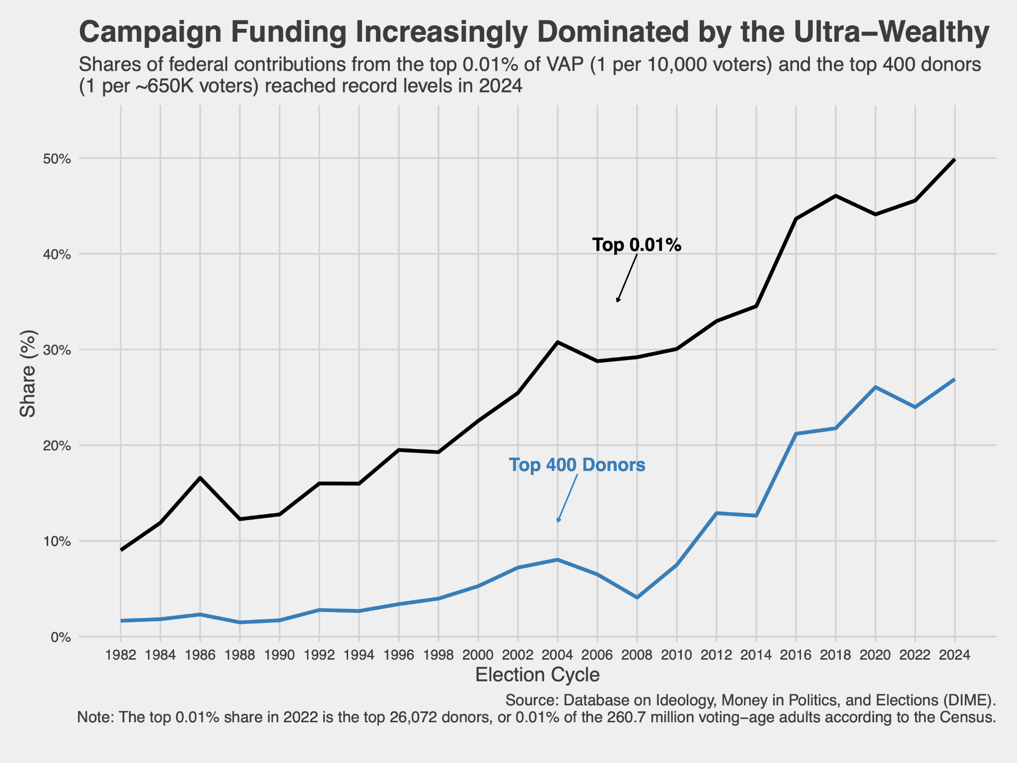 This dynamic is warping our political parties. In the 2024 election cycle, an astonishing 56 percent of all contributions to Republican federal campaign committees came from mega-donors giving over $1 million each. When a major party becomes so dependent on such a tiny sliver of the population, it inevitably drifts from "one person, one vote" toward "one dollar, one vote."