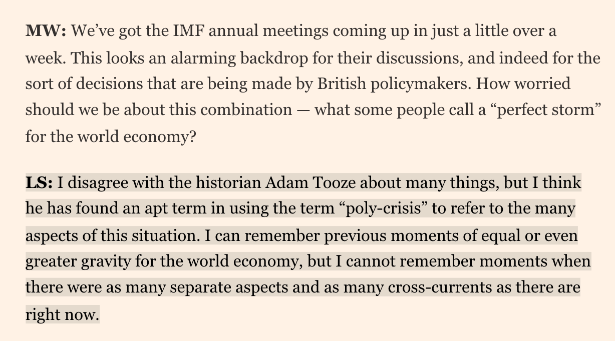 So when Summers talks about polycrisis what is he actually seeing?
