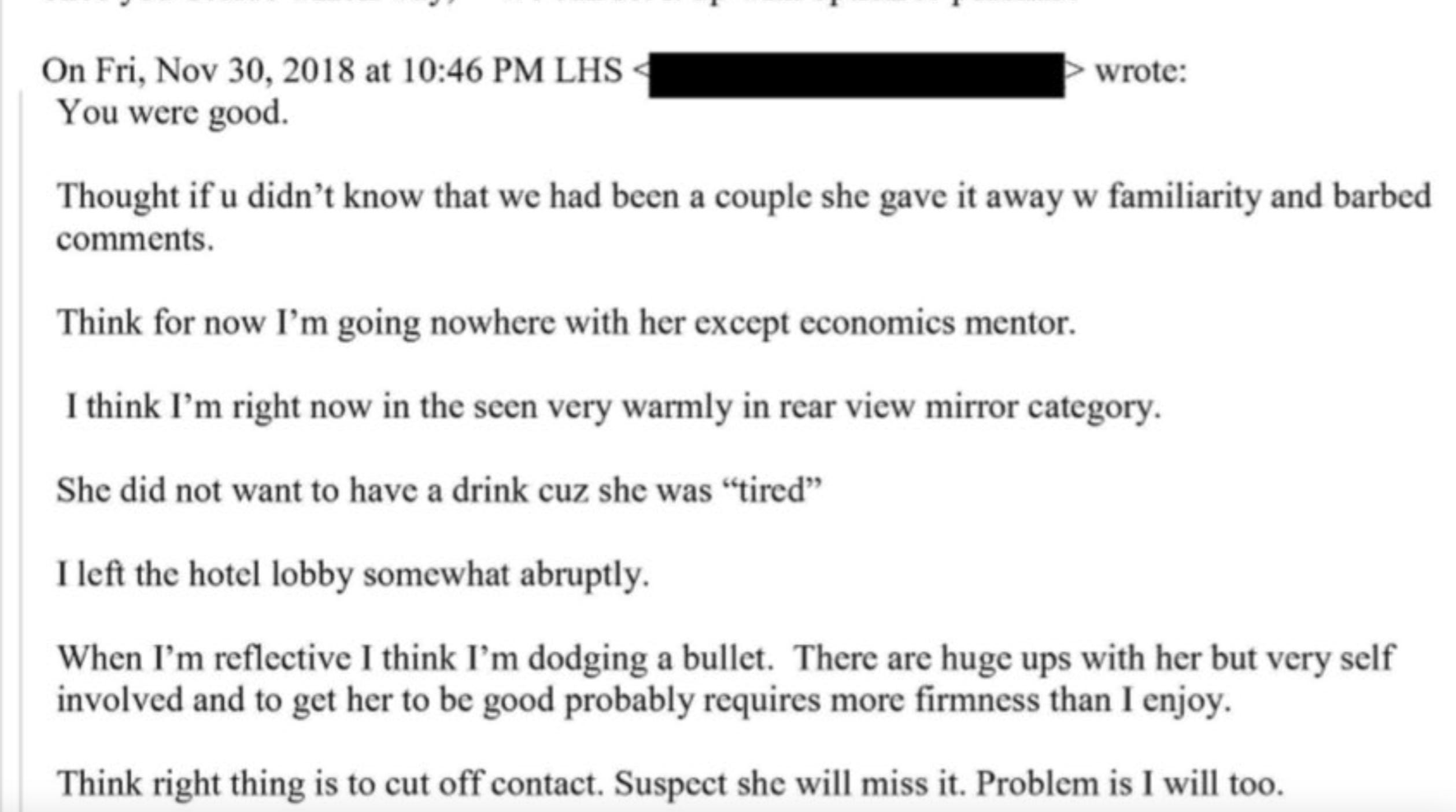 That exchange with Epstein was on Friday, presumably about Thursday night.